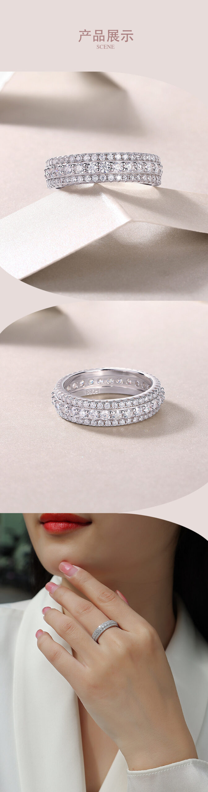 S925 silver ring moissanite ring cross-border Etsy live hot selling closed ring source hand jewelry wholesale