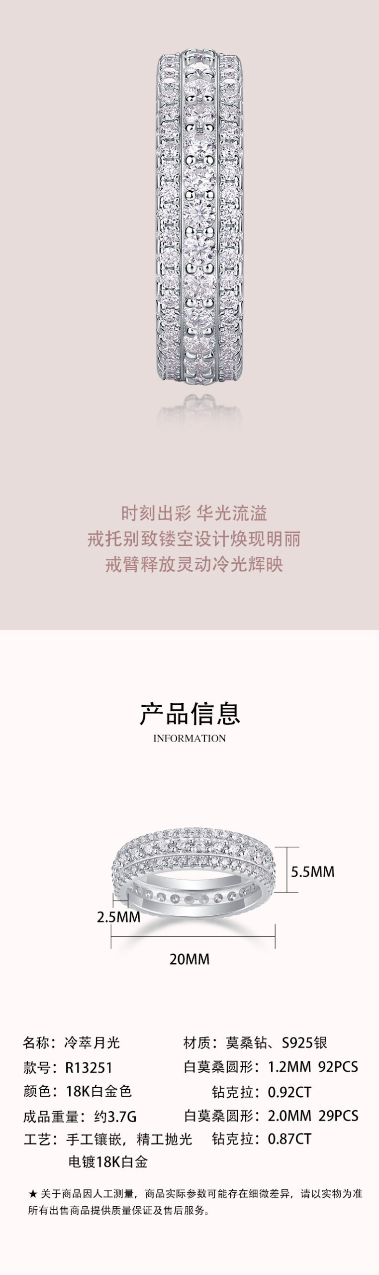 3rd top layer: white rhodium plating