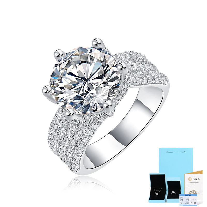 S925 Silver Deluxe Inlay Etsy Ring, Moissanite Vow Women’s Ring, 5 Carat Ring Factory Wholesale In Stock